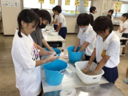 靴下の手洗いをしました。中には、この日のために、汚れがきついものをわざわざ用意してくるほど、気合を入れて授業に臨んでいる子もいました。その高い意欲に、とても感心しました。7月17日(木)の学習の様子です。