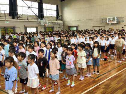 夏休み前となる7月18日(金)、「夏休み前区切りの会」を行いました。夏休みに向けたお話を聞き、みんなで校歌を歌いました。
