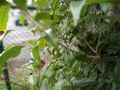 やはり、これまでの2つとは別の木ですが、この2枚の写真は同じ木です。これは、高さはさほどないのですが、それでも、複数、抜け殻が残っていました。