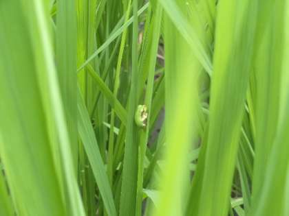 カエルがいました。静かに、カメラを近づけて撮影しましたが、気配を感じていなかったのか、まったく気に留めなかったのか、少しも動き出しませんでした。何だか、そののんびりとした感じに癒されました。