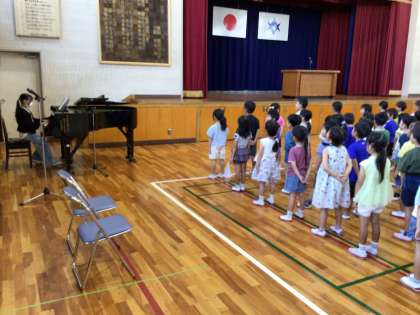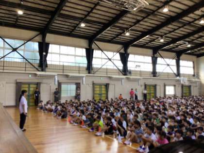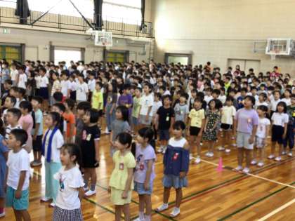 朝に行った「夏休み後区切りの会」の様子です。冷房のおかげで、涼しく行うことができました。