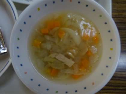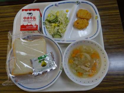 給食「大麦と野菜のスープ など」