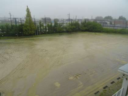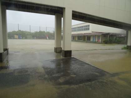本日、台風15号が接近したことで、朝から荒天となり、昼前には、学区内で道路の冠水が発生するなど、心配なことが続きました。学校敷地内でも、一時。排水が追い付かなくなり、低い場所には、水が足首の高さくらいまでたまりました。