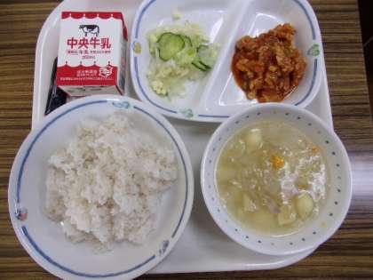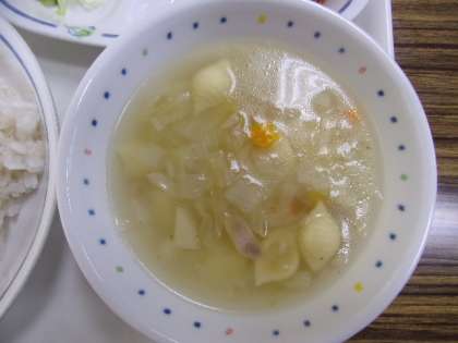 仕切り皿の右側に盛られている「チキンライスの具」を、ごはんに混ぜ込んで「チキンライス」にして食べました。パスタスープには、確かにパスタが入っていました。写真だとわかりにくいかもしれません。