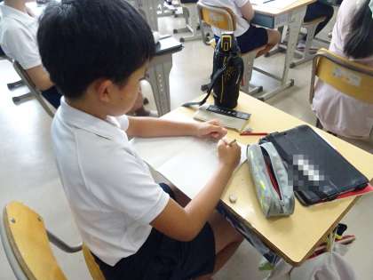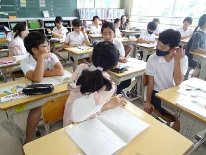 分数の計算を使う文章題の解き方を考えていました。やはり、4日(木)の授業の様子です。