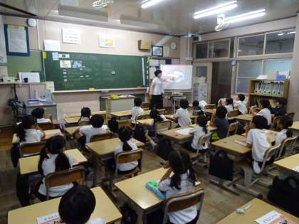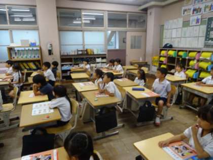 日本のお菓子がもつよさや工夫を知ることで、我が国の伝統や文化を大切にしようとする心情を育てることをねらいとしています。5日(金)の授業の様子です。