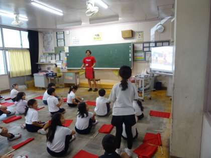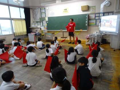 練習といっても、まだ、どんなものになるかを動画で見たり、どんな動きが美しく見えるかを話し合ったりする…といった段階です。5日(金)の授業の様子です。
