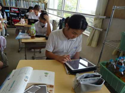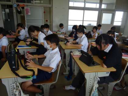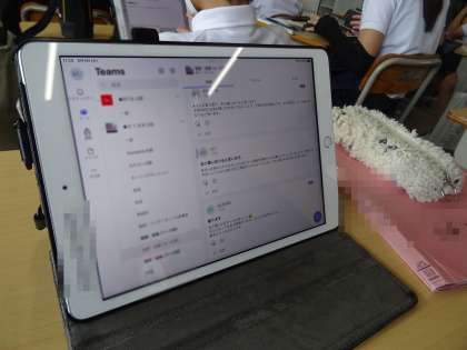 Teamsを活用しています。このクラスのTeam内で、あるテーマについて、意見を投稿し…、さらに、それに対する意見を投稿しというように、進めていました。9日(火)の授業の様子です。