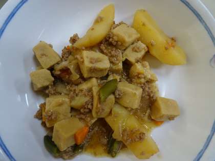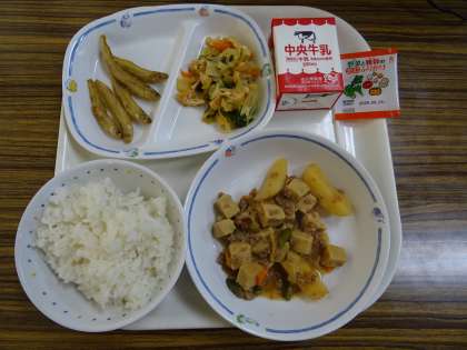 どちらかというと、和風のメニューでした。高野豆腐の旨煮は、ひき肉やジャガイモも使われていて、食べ応えがありました。