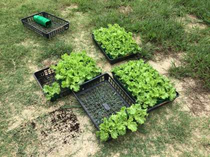 12日(金)、6,7,8,9組が冬野菜の苗植えをした後、やはり、大橋園芸さんに講師を務めていただき、2年生がリーフレタスの苗植えを行いました。
