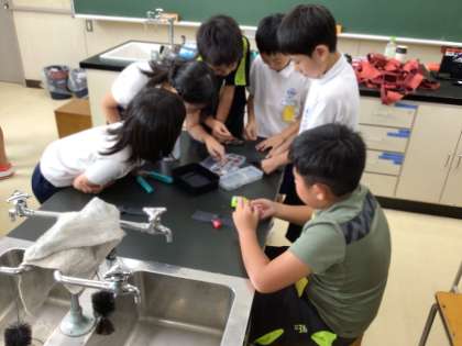 トヨタ自動車が行っている環境への取り組みについて学び、車を作っているときに出た廃材で物を作る体験を行いました。1クラス2時間ずつ、じっくり行いました。16日(火)の活動の様子です。