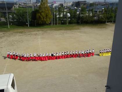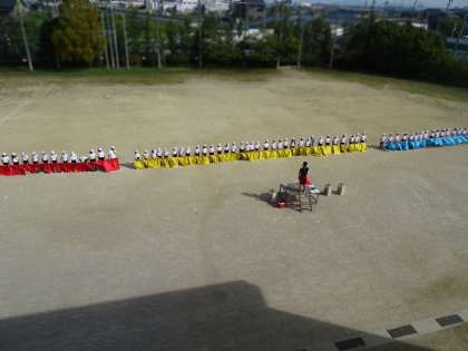だんだん練習が本格化しています。隊形を整えたり、移動したり…などの工夫も、みんなで協力しながら練られています。2日(木)の練習の様子です。