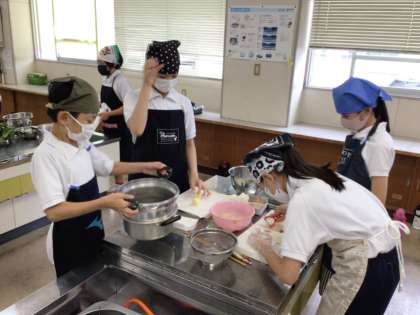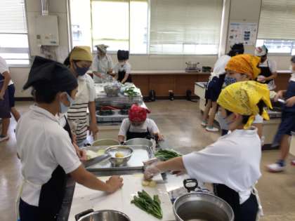 キャンプ以来の調理という子もいたのではないでしょうか?ジャガイモと青菜を茹でました。昨日の授業の様子です。