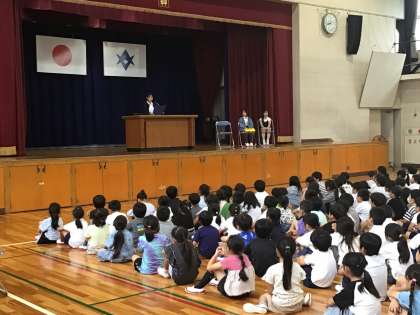 前期にがんばったこと、後期にがんばりたいことを代表児童が発表しました。