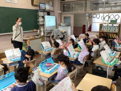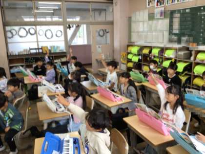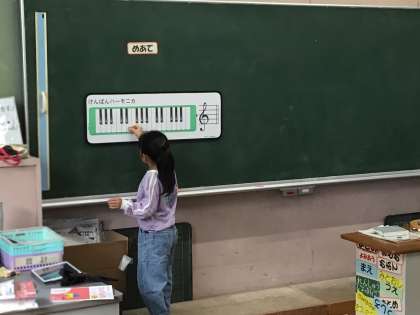 鍵盤ハーモニカでドレミファソラシドを弾く時の指遣いを確認していました。