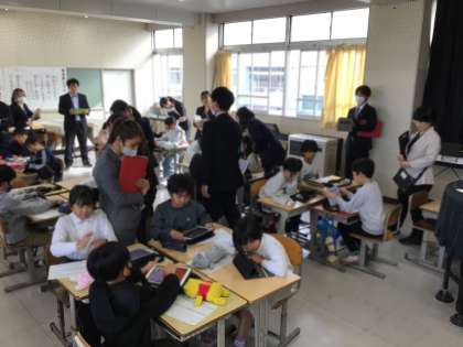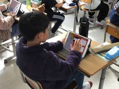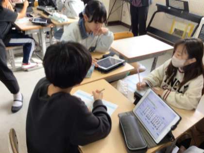 和音を活かして、自分のイメージした物語の雰囲気になるように、旋律を作ります。グループで意見を交換して、よりよいものを目指していました。