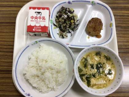 おろしがついたハンバーグ、豊田市の給食では、初登場かもしれません。