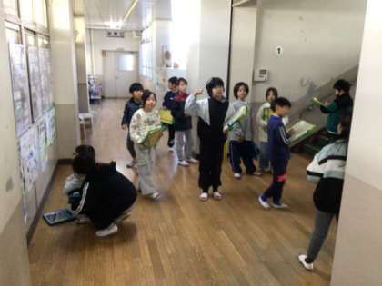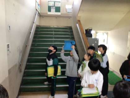やはり、学校内の防火設備を探して回っていました。一昨日の授業の様子です。