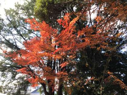 毎年、最後に紅葉するもみじが、かなり色づいてきました。まもなくピークになりそうです。このもみじが散り始めると、いよいよ、本格的な冬がやってきます。