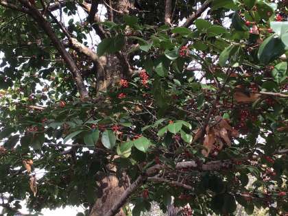 ビオトープをはじめ、校内では、様々なところに赤い実をつけた植物が見られます。