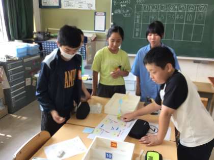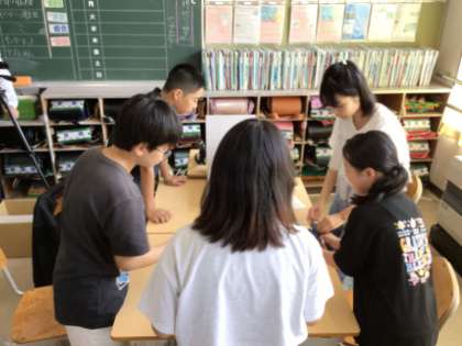 最後に、グループで工作をしました。支点・力点・作用点…、てこの原理をうまく活用すると良いようですが、他の作戦も有効だったそうです。