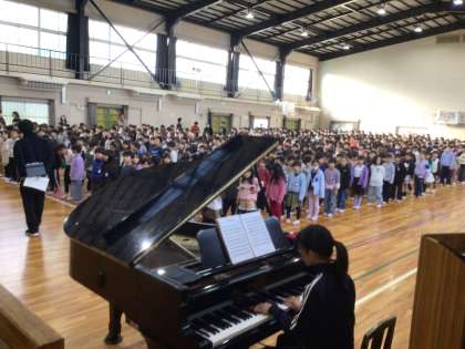 内容は、様々な表彰、冬休みに向けてのお話、校歌斉唱でした。
