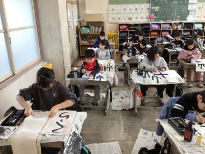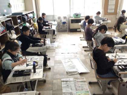 3年生からは、毛筆(習字)です。3年生では、毛筆の基本となる、始筆・送筆・終筆について、学習してきています。決められた時間・枚数の中で、そうした基本的な技術をきちんと発揮できるか…、そして、お手本に近づけられるか…、がポイントになります。