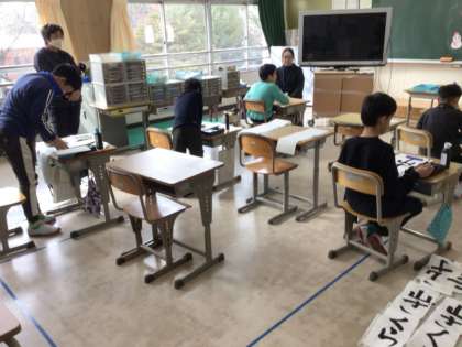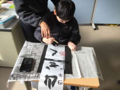 なお、交流学級で、書き初め大会を行っている子もいます。