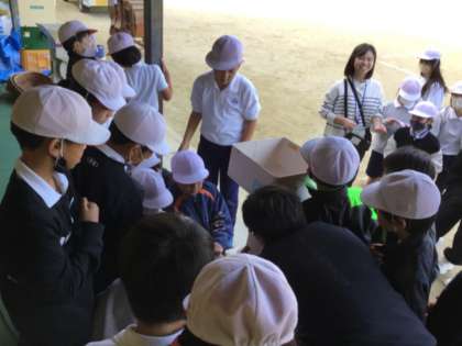 最後に、機械で精米の作業をし、それをみんなで見守りました。