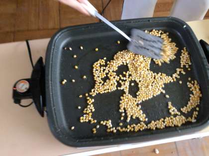畑で育てたトウモロコシを使って、ポップコーンを作りました。