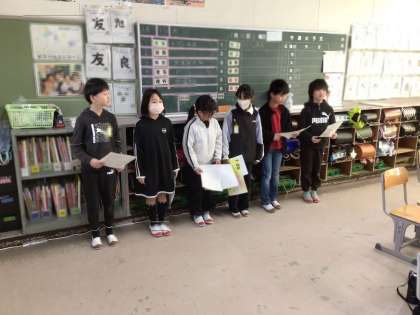 いよいよ、4年生が「なかよし活動」(縦割り班活動)で、みんなの前で話をする役割を担うようになっていきます。一生懸命、準備・練習に取り組んでいました。14日(水)の活動の様子です。