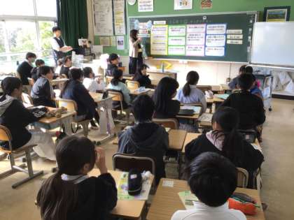 とよた子どもの権利相談室(「こことよ」)より、講師の方にお越しいただき、クラスごとに行いました。