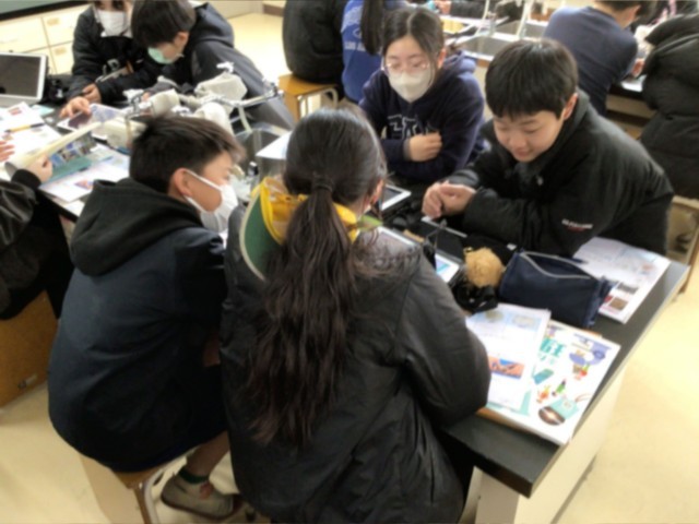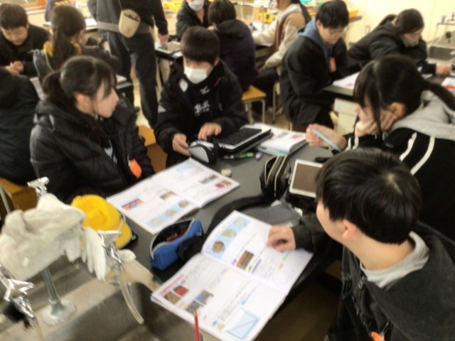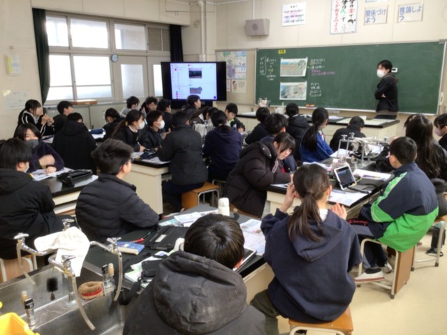 地層のでき方について、考えていました。愛知県内でも、知多半島など、地層が見られるところがあります。3日(火)の授業の様子です。