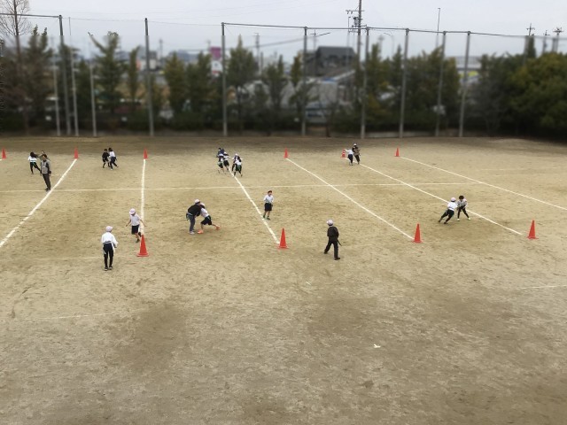 タグラグビーの学習の様子です。かつてを思えば、かなりポピュラーな種目になってきています。