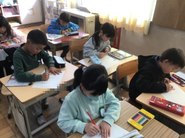 歌詞で思い浮かぶ様子を絵で描き、イメージを膨らませていました。