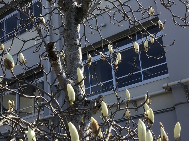 ハクモクレン 開花近づく
