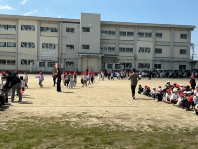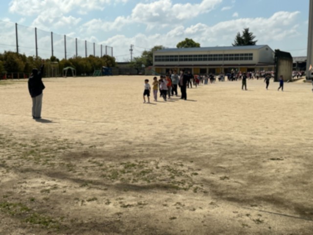 それぞれの教室から、避難経路を通って、運動場に避難しました。