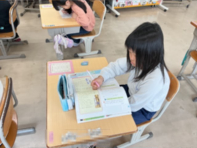 7組は、多くの子が国語に取り組んでいましたが、社会に取り組んでいる子もいました。やはり、一生懸命、それぞれの学習課題に取り組んでいました。