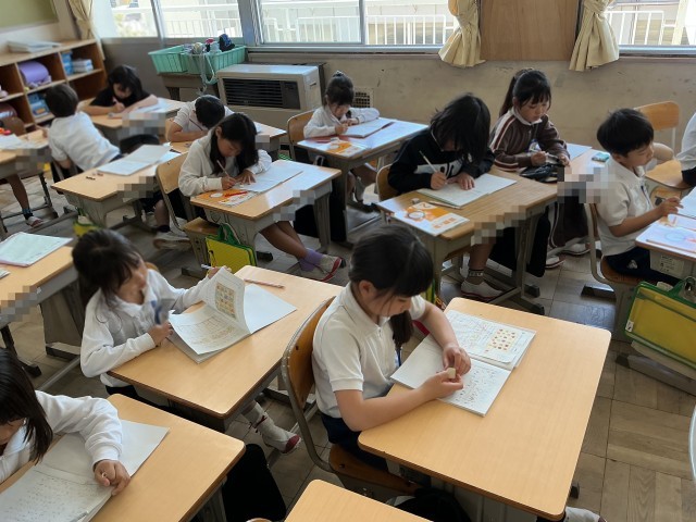 集中して、一生懸命、問題練習に取り組んでいました。これは、先週の授業の様子です。