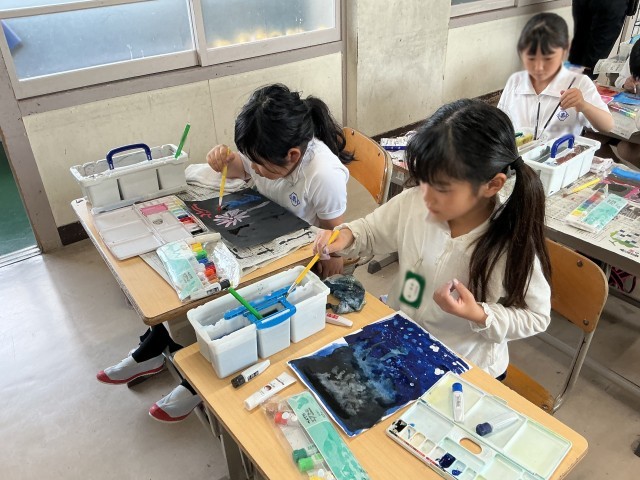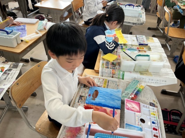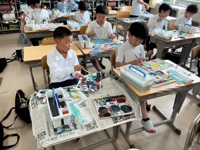 3の1図工「絵の具+水+筆=いい感じ!」
