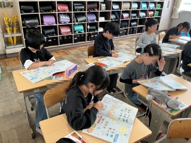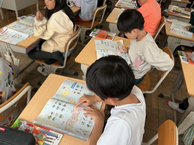 日本地図から、先生が指定した都道府県を探していました。見つけたら、指をさすルールだったようです。都道府県は全部で47あります。日本地図に慣れていくことで、きっといつの間にか頭の中に入っていくのではないかと思います。これは、先週の学習の様子です。