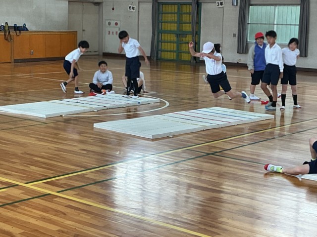 4の1体育「立ち幅跳び練習」