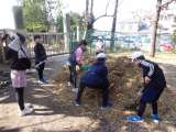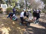 作業の様子です。運ばれたウッドチップを広げ、均等にならしていきました。なお、ウ...