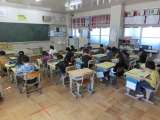 6,7,8,9組で出かける校外学習の事前指導の様子です。券売機の模型で切符の買...