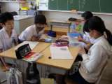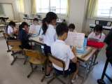 自分たちで調べた内容を、発表する準備をしていました。グループ活動です。席の空い...