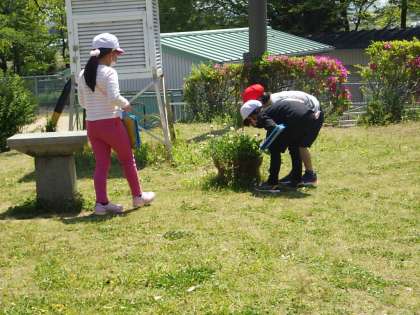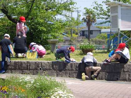 理科の最初の学習は「自然の観察」春の植物や生き物を探しながら、観察記録を書いてまとめていきます。
