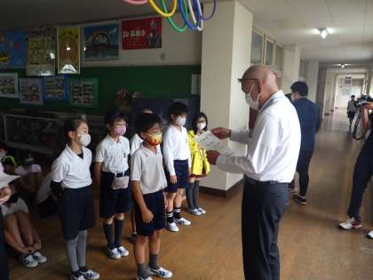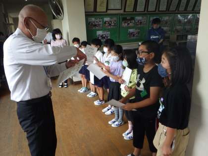 それぞれのクラスをひっぱるリーダーたちです。きりっとしていて、みんな元気に校長先生から任命状をいただいていました。