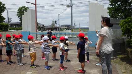 入学して約2か月が過ぎ、すっかり小学生らしくなった1年生。とても上手に並んで校庭を歩いていきました。