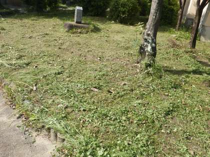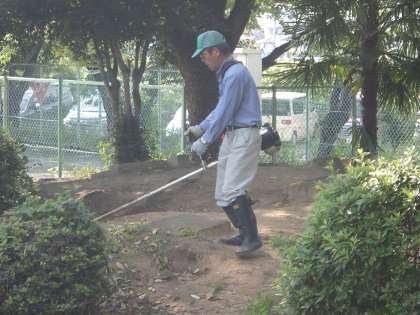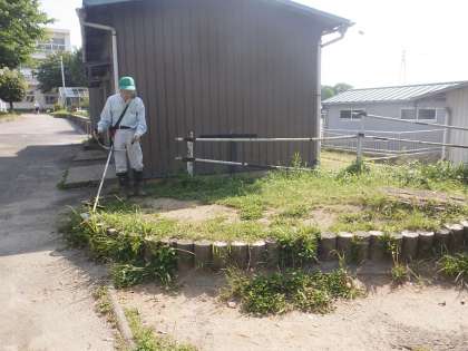 最近は校内のいたるところで夏草が生えてきているため、朝から草刈をしています。
