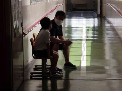 朝の会から1時間目の間に40分時間を設定し、全児童に個別に相談会を開いています。